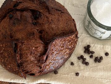 Don’t let the name fool you, this ”mini” loaf still weighs in at over 1 lb of goodness! Enjoy your sourdough with melty morsels of organic + Fairtrade chocolate chips all throughout. This fun & “mini” delicious loaf will remind you of a chocolate croissant! Enjoy with your coffee & start your day off with organic, nutrient dense sourdough, with a pop of chocolate fun.