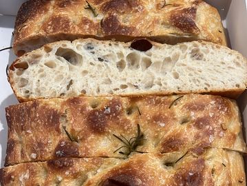 100% Organic. The fragrant fresh rosemary, textured sea salt flakes, & organic golden olive oil with the depth of flavor from the sourdough process is perfection! Excellent for sandwiches, paired with a savory breakfast or dipping with oil and vinegar. This is served as a 1/4 sheet pan and is over 2lbs in size. Always baked fresh for the date of pick up.